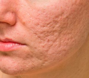 Las cicatrices de acné son cicatrices atróficas y deprimidas que suelen aparecer en la cara, generalmente en las mejillas, frente o mentón.
